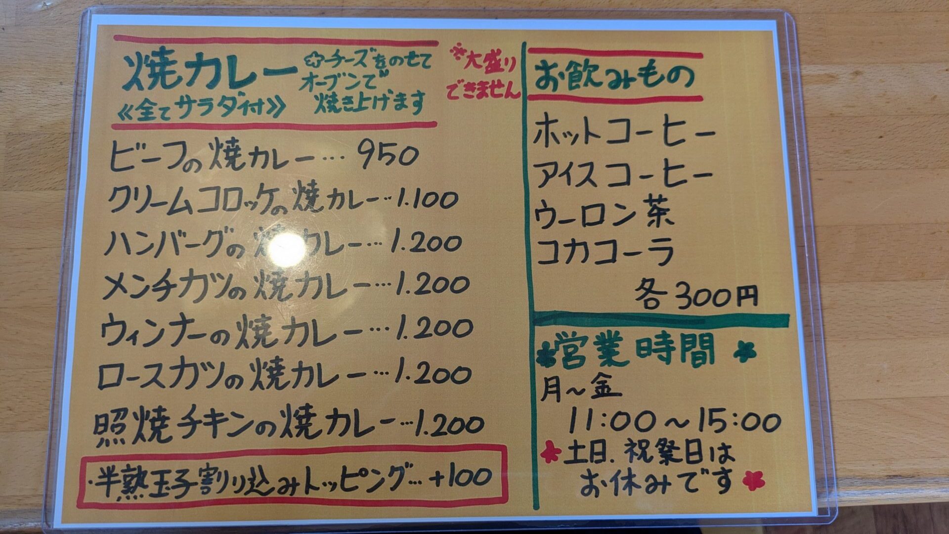 再開後は平日お昼のみの営業