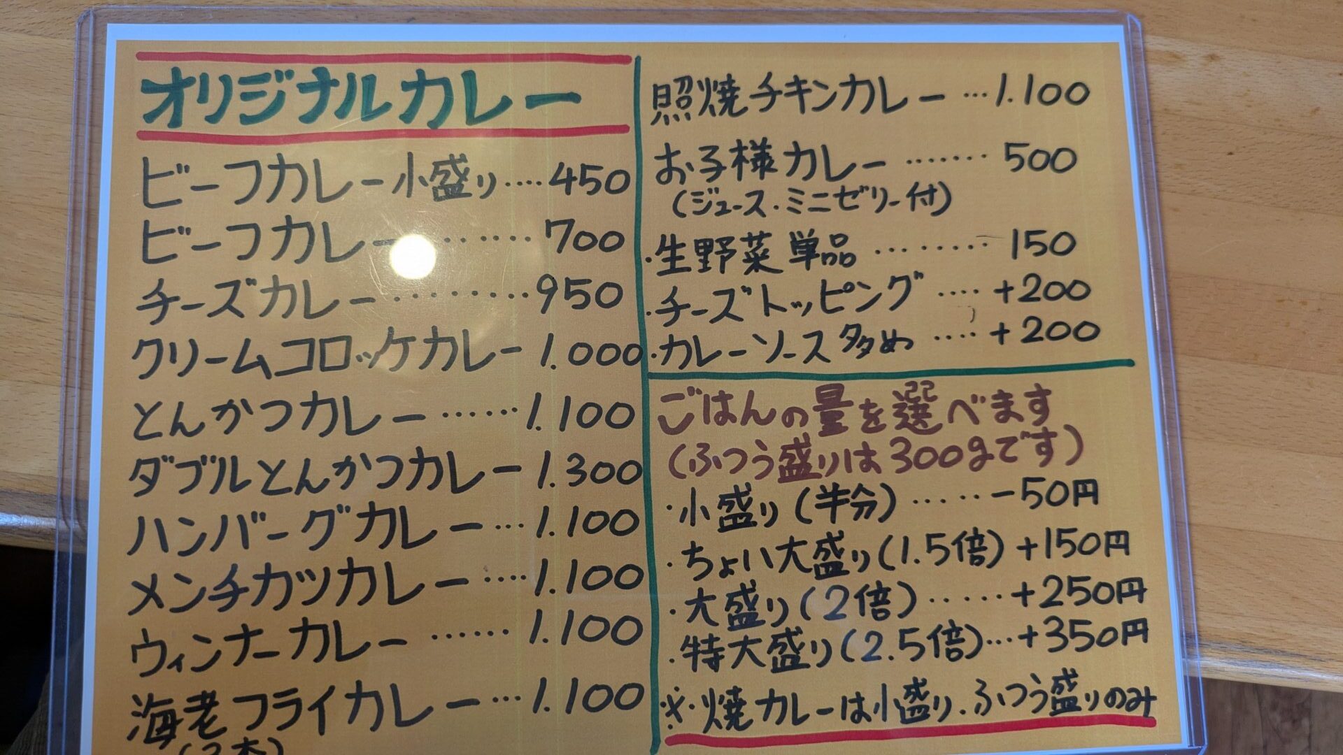 ちなみにルーの量はビーフの焼きカレー>ハンバーグの焼きカレー>ロースかつの焼きカレー