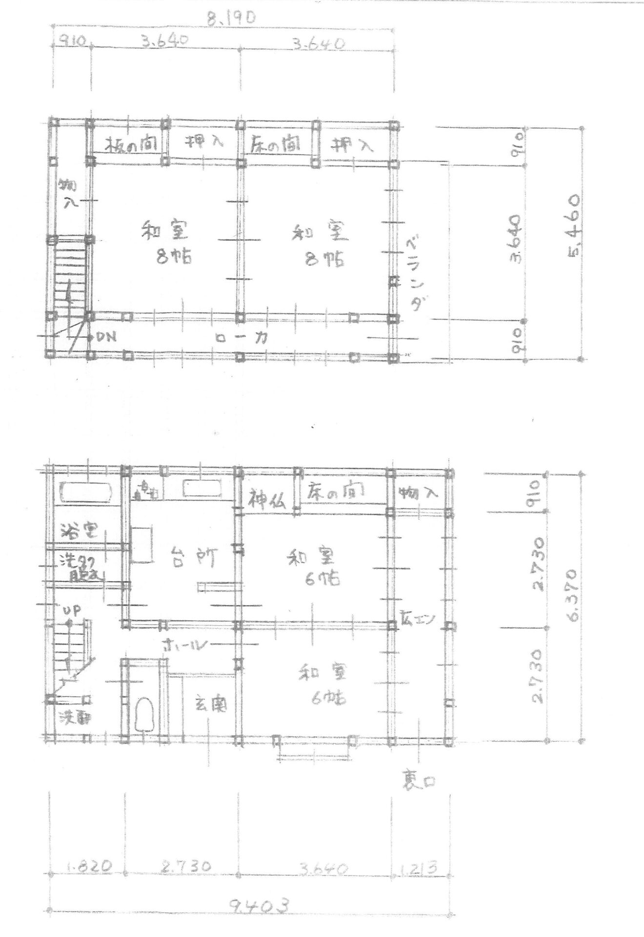間取内容1F:和6、6、K、縁側、トイレ、風呂 2F;和8,8
