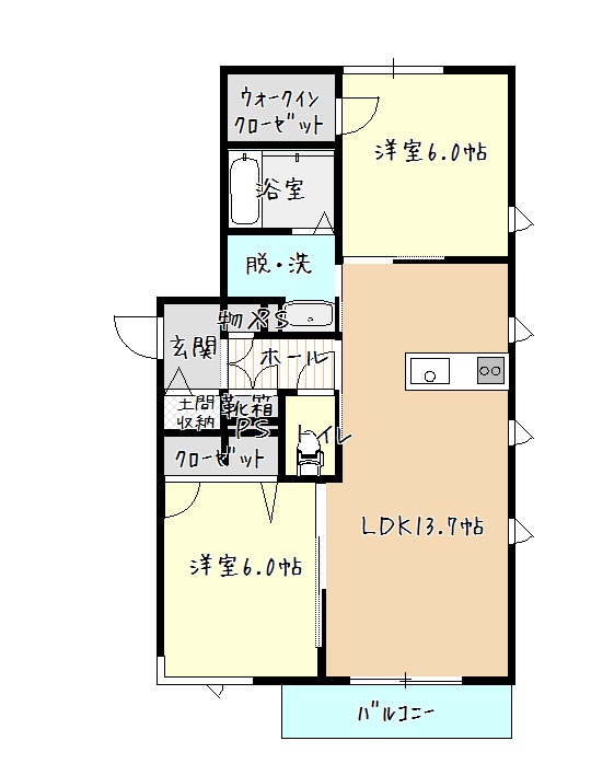 | 間取内容 | 洋6 洋6 LDK13.7(帖) | ||